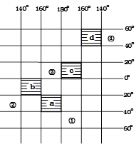 1.关于图中各地的叙述,正确的是2.以下备选项的两个地点中,既分别在东西两半球, 又分别在南北两半球的3.图中a、b、c、d四个区域,按实际面积大小排序,正确的是