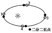 点评:本题解题的关键是掌握昼夜长短分布的基本规律和公转轨道图示的近日点、远日点位置与二分二至日的关系。