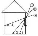 5、单选题 下图为某地朝南窗户二分二至日正午阳光入射图。据图完成 题。