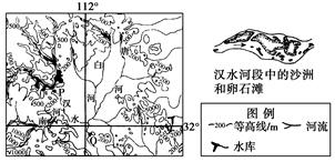 (3)由于支流含沙量大,注入汉水带来大量泥沙;汉水在本河段流经平原,流速较缓,泥沙沉积,河床抬高甚至形成河中沙洲。再加上季风气候,降水变率大,常受洪水灾害,沿河堤坝逐渐加高,造成平原部分离河越远则地势越低,至山冈边为最低,造成河谷地貌的倒置。