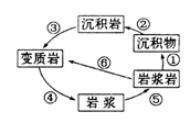 4、填空题 (原创)读“三大岩石转化示意图”。完成下列问题。(10分)