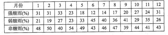 2、单选题 下表是我国不同等级酸雨各月百分率统计表,读表回答下列问题。