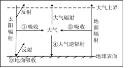 2、单选题 依据地球大气受热过程示意图,分析大气中
