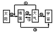 (3)在农、林业生产中,在用熏烟的办法防御霜冻时,常选择在傍晚进行,这样释放出的烟雾不会向高空扩散而弥漫在贴近地面的气层中,保温效果好。借鉴的是?逆温的原理。3、单选题 ? 下图中各箭头及其代表符号①②③④⑤表示太阳、地面、大气、宇宙空间之间的热力作用,其中包括太阳辐射、地面辐射、大气辐射、大气逆辐射、削弱作用(吸收、反射和散射),回答1—4题。