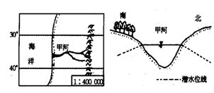 1.图中甲河河口附近海域的洋流可能是2.当该地区地下潜水得到补给最多的时候,下列叙述正确的是