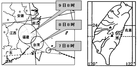 (1)台风是_______________(天气系统)强烈发展的结果。受其影响,8月7日8时花莲县的主导风向是