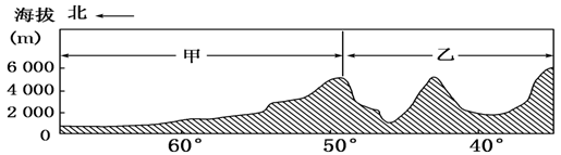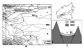 材料二?甲、乙两图为喀什所在区域图和地质剖面图。