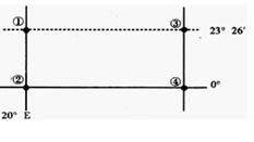 5、单选题 读图,此时②点为正午,太阳高度角为90°,④点为昏线与赤道的交点。回答问题。