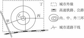 4、单选题 读“某城市内部和对外联系路线图”,完成(1)—(2)题。