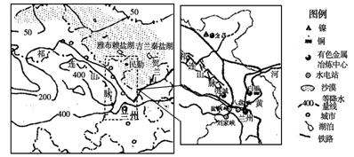 (2)读图可知,该区域有色金属矿产资源丰富,有丰富的镍、铜矿产,陇海兰新铁路通过,铁路运输便利;有色金属冶炼是动力导向性工业,位于黄河上游,水能、风能资源丰富。
