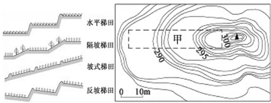 【小题1】右图中甲区地形适合修筑的梯田类型是( )