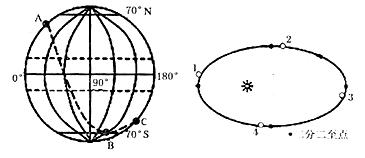 (3)此时地球在右图公转轨道上的位置是1—4地中的________地。