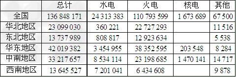 4、综合题 读某年我国部分地区发电量统计表,回答下列问题。某年我国部分地区发电量统计表(单位:万千瓦/时)