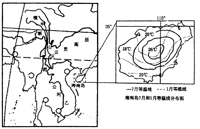 (1)描述海南岛7月等温线分布特征,并分析其原因。(8分)