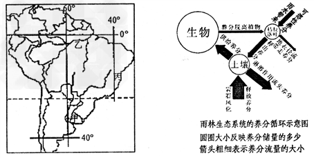 ?材料二:雨林生态系统的养分循环示意图(上右)。