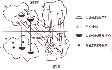 (1)描述制鞋业在M、N两地区之间的转移情况。(2分)