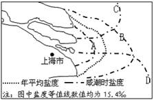 5、综合题 据报道,上海市2006年多次受到咸潮入侵。经过近15年的数据和技术积累,上海已经具备精确预报咸潮入侵长江口的技术能力。咸潮是指沿海地区海水通过河流或其他渠道倒流进内陆区域后,水中的盐分达到或超过250亳克/升的自然灾害。据此回答: