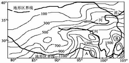 1、综合题 读青藏高原多年平均降水量分布图(图中为年等降水量线单位:mm),回答问题: