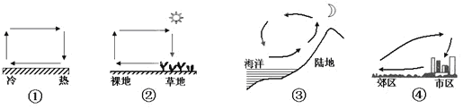 1、单选题 下图中表示的大气运动正确的是(箭头表示空气运动方向)( )
