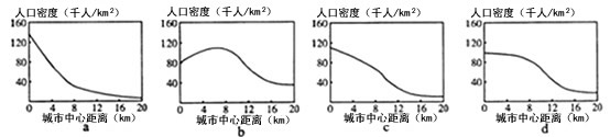 2、单选题 下图是“某城市不同时期人口密度与距市中心距离关系图”读图回答1—3题。