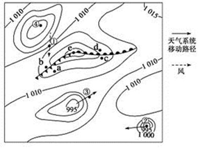考点:考查等值线的判读、常见的天气系统及其特点。