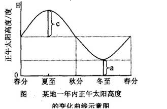本题解析:思路一:a、c所代表的冬夏至正午太阳高度的差值为20度,将各选项代入验证。思路二:赋值,假设出该地纬度,运用正午太阳计算公式进行计算,H(夏至)-H(冬至)=20,也可求取结果。