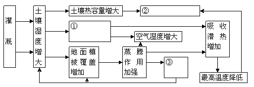 B.地面蒸发的水量增多、气温变幅减小、降水增加