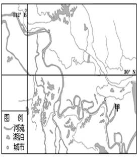 (1)甲所在地区地势平坦,河流流经该地区时侧蚀和沉积作用增强,河道出现若干弯曲;(2分)不断的凹岸侵蚀、凸岸堆积使河道越来越弯曲;(2分)河水冲刷与侵蚀最弯曲的河岸,河流遂裁弯取直;(2分)河水从裁弯取直部位流走,原有河曲被废弃,被废弃河曲即甲湖。(2分)