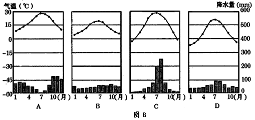 (2)A、B、C三幅气候资料图中,属于丙地的是____,说明理由。