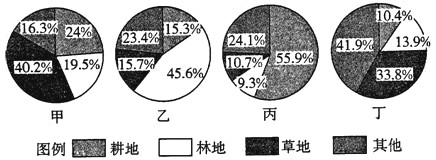 5、单选题 下图是中国、英国、印度和俄罗斯四个国家土地利用类型的百分比构成图。读图,回答1~2题