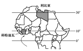 (3)科特迪瓦南部地区夏半年降水多于冬半年,其原因是_____________________________,________________________________;而利比亚北部沿海________(冬或夏)半年降水较多,原因是____________________________________________。