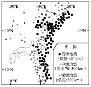 3、单选题 下图为日本及其附近海域震源深度分布示意图。读图回答1—2题。