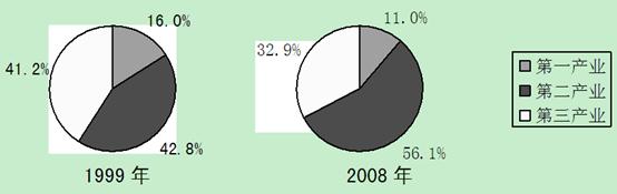 1.第一、第三产业比重下降,第二产业比重上升(3分)