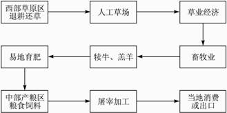 (3)图中所示生产模式对西部草原区、中部产粮区各有什么影响?