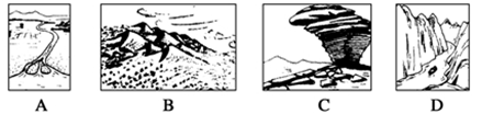 本题主要考查外力作用与地貌。外力作用主要通过流水、风力、冰川、海浪等改变地表形态。外力作用的主要表现形式有:风化、侵蚀、搬运、堆积、固积成岩。沙丘是风力沉积作用地貌。风力侵蚀常形成风蚀洼地,风湿蘑菇,风蚀城堡等。所以本题选择B选项。