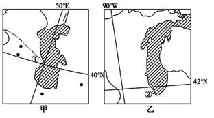 3、单选题 甲、乙两幅图中阴影部分表示湖泊,读图回答问题。