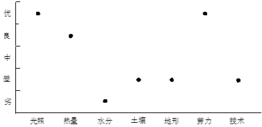 小题2:该地区的优势条件是光照和劳力,最差的是水分。符合的是我国的西北地区。