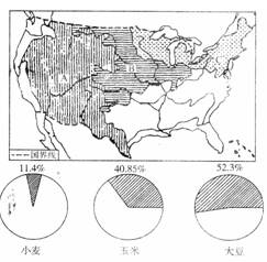 2、综合题 读美国农业生产地域类型图及美国主要农产品产量占世界产量的比重(1997年)图,回答问题。(14分)