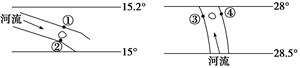 3、多选题  地转偏向力具有重要的地理意义。某些经济活动、军事活动要考虑它的影响。气流、河流等自然地理事物也受其影响。据此并结合所学知识,回答问题。1.某军舰在东经160°,南纬59°的海面上,沿160°E经线向南发射导弹,射程为80千米,落弹点将在2.下图所示,两条河流下游各有一个小岛,最终小岛可能连接的堤岸是?