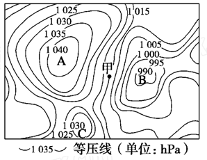 (1)就气压状况而言,图中A与B中低压中心是______,B与C中高压中心是______。(4分)