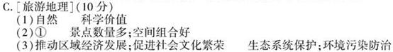 (1)东寨缸红树林保护区和尖峰岭国家森林公园属于旅游资源类型中的旅游资源,其旅游价值有美学价值、经济价值、抗体娱乐价值和价值。(2分)