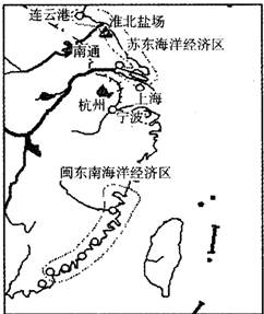 (1)比较苏东与闽东南海岸线特征的差异及形成原因。(4分)