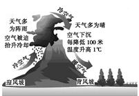 【小题1】根据图示信息可知,山地背风坡的空气为干热气流,可能会给当地带来干旱灾害,使树木的叶片焦枯、土地龟裂。