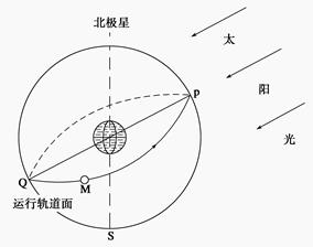1、单选题 下图为“某卫星M绕地球运行轨道及方向示意图”,M第一次到达P点时,地球、卫星、太阳正好在同一直线上,且北京时间是2011年6月22日20时,卫星运行的周期为6小时。据此回答下题。