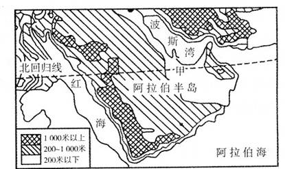 (1)绘出沿北回归线的阿拉伯半岛地形剖面示意图。(4分)