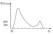 (1)画图,要求纵坐标点标注正确,均匀,每格距离相同,东西沿海到海平面,高度0米。剖面线穿过地区,海拔最高大于1000米,位于西部。东部有一高点,海拔200-1000米之间。总趋势准确。