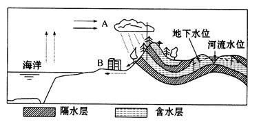 参考答案:(1)海陆间循环(2)地面沉降(或地面建筑物倾斜、坍塌)、地下水位下降、海水入侵 (3)水汽输送 (4)太阳 重力 (5)河水补给地下水 夏
