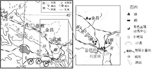 右图为该地区有色金属走廊放大图,金昌是我国最大镍矿基地、三大伴生矿之一。