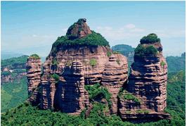 2、单选题 2010年8月,“中国丹霞”被正式列入《世界遗产名录》,位列其中的广东丹霞山主要是由红色砂砾岩构成的。为“广东丹霞山地貌景观图”。读图完成1~2题。