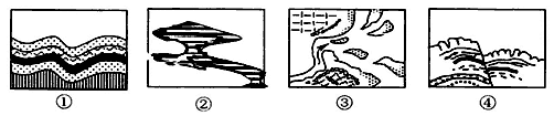 4、单选题 下图所示的地质构造或地貌景观中,主要由内力作用形成的是: